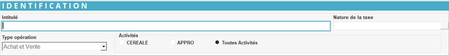 Choix dans la table des Natures de taxe. Si une nature de taxe n’existe pas, il est possible de la créer en se rendant dans FICHIER → NATURE DE TAXE (Ajouter un enregistrement (+), renseigner l'intitulé et valider). - Type opération
