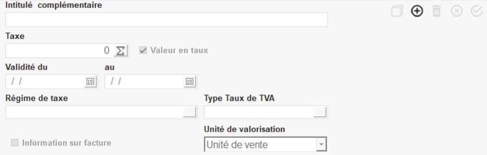 - Si unité de vente : indique que la valeur de la taxe est exprimée en unité de vente de l'article.