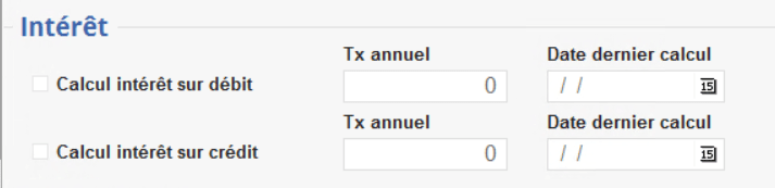 Ce taux est hérité de la table type de Tiers s'il est renseigné dans celle-ci ou bien sinon de celui paramétré dans l'entité administrative. Si rempli, ce taux sera utilisé en lieu et place des autres taux d’intérêt paramétrés. - Date dernier calcul