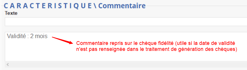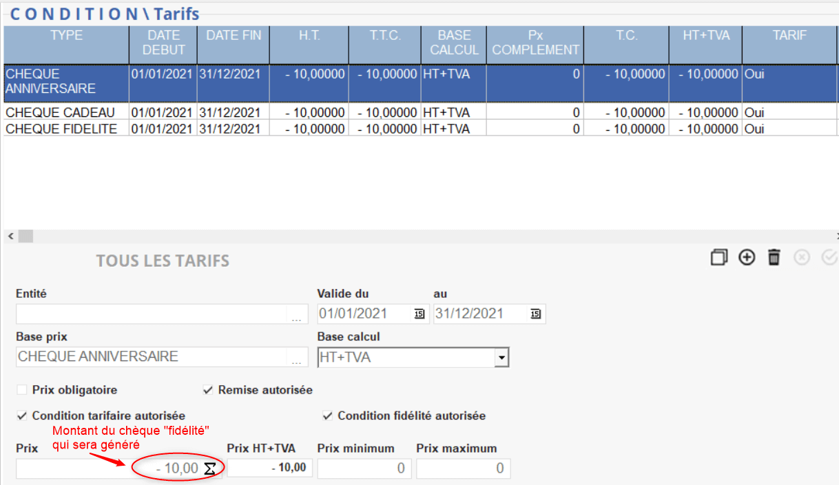 Sélectionner la base prix contenant la valeur du chèque . - Fidélité depuis le… jusqu'au