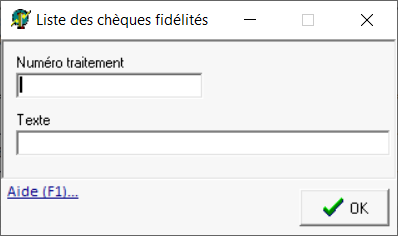 Renseigner le numéro de traitement de la génération des chèques fidélité - Texte