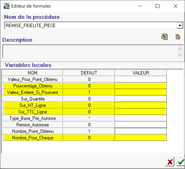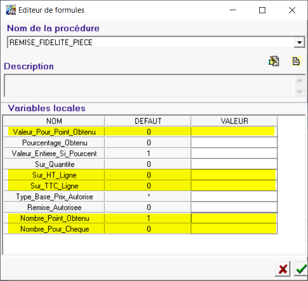 et sélectionner la formule REMISE_FIDELITE_PIECE puis valider sans paramètre.