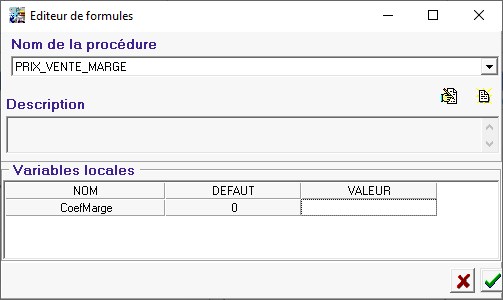 | Coef marge | en % | Valeur du coefficient à appliquer au prix de valorisation de marge selon la formule : Prix de vente = (Valo Marge) / (1-(coef marge/100)) |