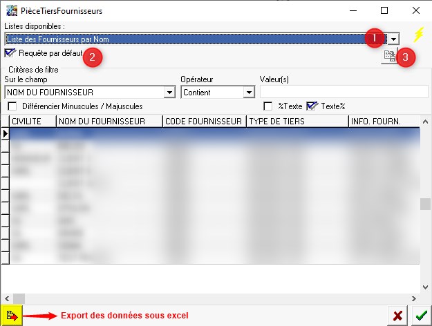 - Contient = recherche tous les éléments qui contiennent les valeurs demandées.