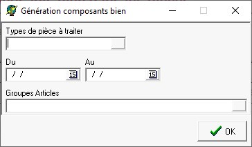 Ce traitement permet de générer des lignes de composants, de nature “Bien”, dans les pièces de type commande, livraison/retour, facture/avoir ou devis.