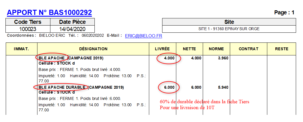 Il est envisageable que la quantité de céréale durable ne soit gérée, ni au niveau de la saisie du pont bascule, ni au niveau du bon d’apport ou que le retour du courrier intervienne après que les saisies aient été faites MAIS NON FACTUREES.