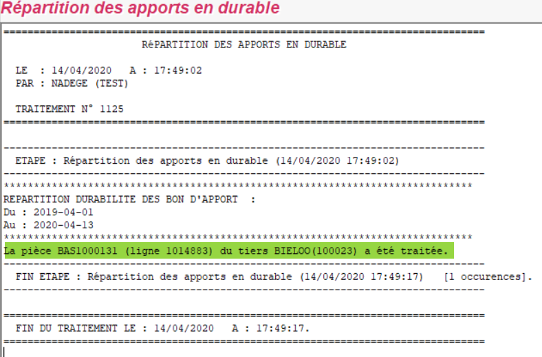 Dans ce cas, ce traitement va générer la répartition sur les bons d'apport effectués :