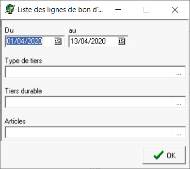 Contrôle Durabilité Tiers : Permet de contrôler la validité de la déclaration des tiers durables pour une période donnée.