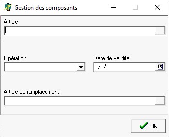Renseigner la date de fin de validité pour le composant choisi dans le champ ARTICLE. - Article de remplacement