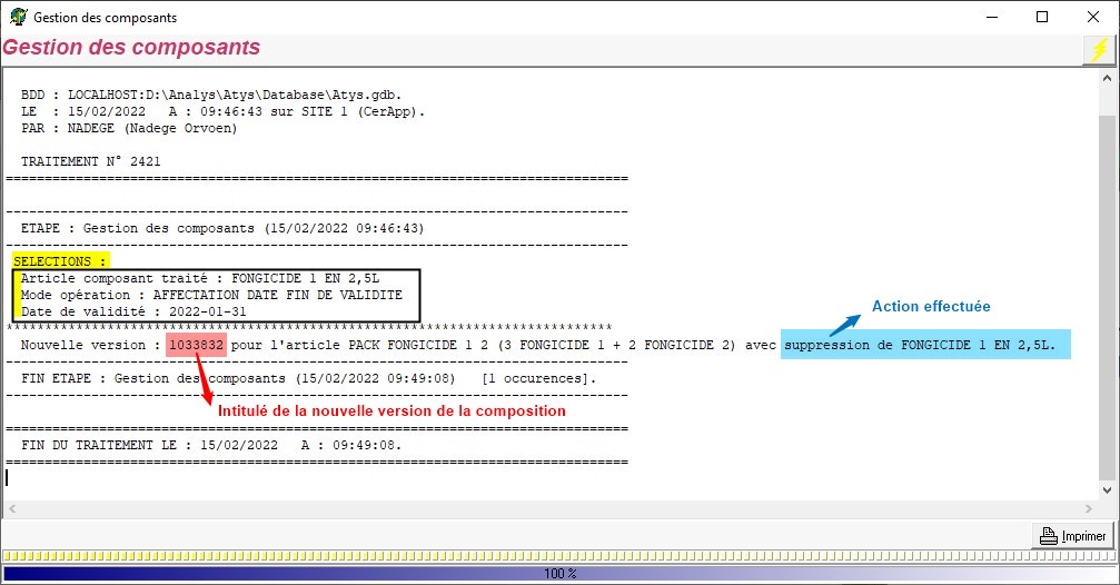 Ce traitement permet de positionner une date de fin de validité pour un composant d’une version par le process suivant :