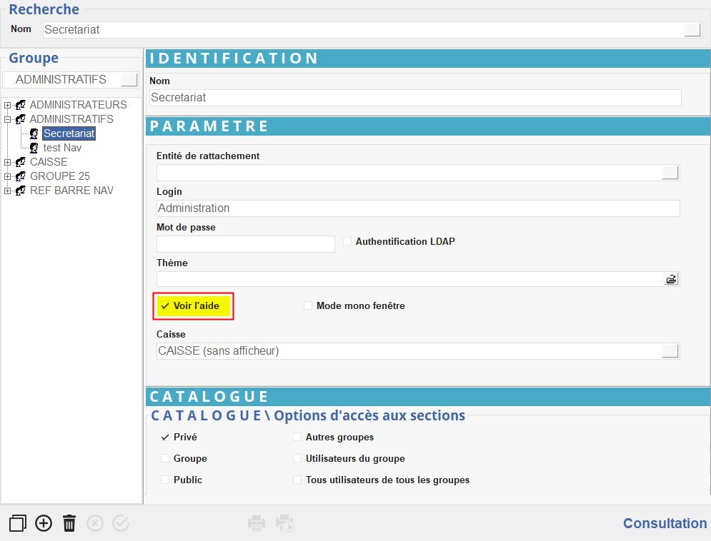 Attention, pour qu’un utilisateur puisse voir les info-bulles, il faut que la case « Voir l’aide » soit cochée dans sa fiche utilisateur :