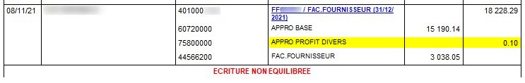 Ecriture non équilibrée (perte ou profit) dans un journal