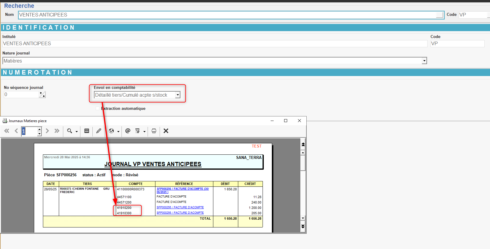 Type d'envoi des écriture en comptabilité :- Cumulé si envoi en cumulé