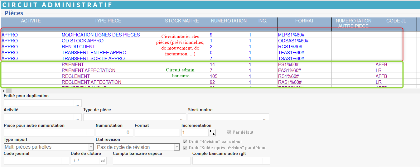 Paramétrer les circuits administratifs (Collection) des différentes pièces utilisées sur ce site.