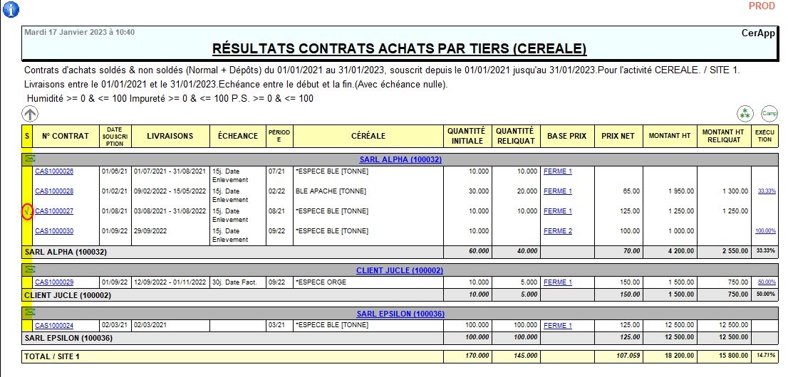 Edition -> Résultats Céréale -> Contrats Achats