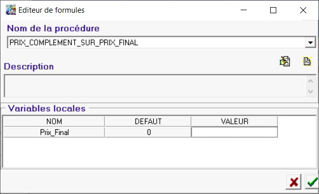 Lors du traitement de génération des bordereaux (en céréale) ou factures (en appro) de complément de prix, le prix de l'article sera calculé selon la formule : Prix final (de la formule) - Prix de la facture/bordereau.