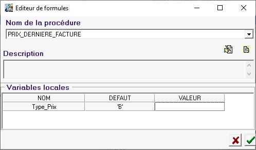Formule permettant d'appliquer le prix, brut ou net, de la dernière facture faite au tiers, en tant que prix brut de vente.