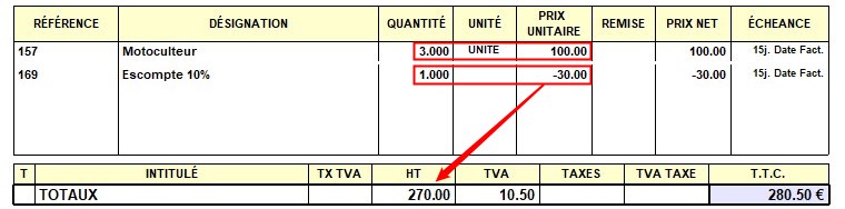 Formule permettant d'appliquer une diminution ou une majoration de prix, en saisie de pièce, en utilisant une ligne d’article à la place d’une ligne de remise/majo.- Créer un article, qui sera utilisé dans la saisie pour matérialiser la diminution ou la majoration de prix.
