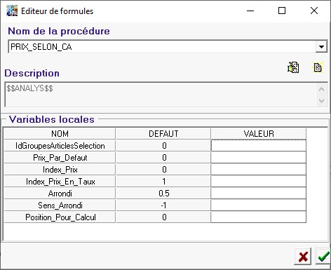- Puis associer, à cet article, un tarif avec un type de base prix et la formule PRIX_SELON_CA