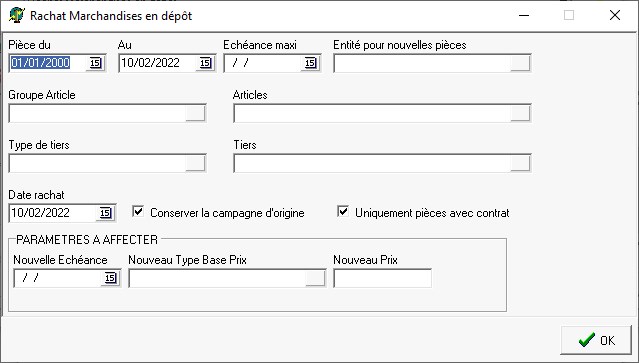 - Si coché, alors conserve, dans les lignes de Rachat, la date campagne stockée dans les lignes de Dépôt.
