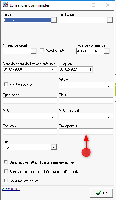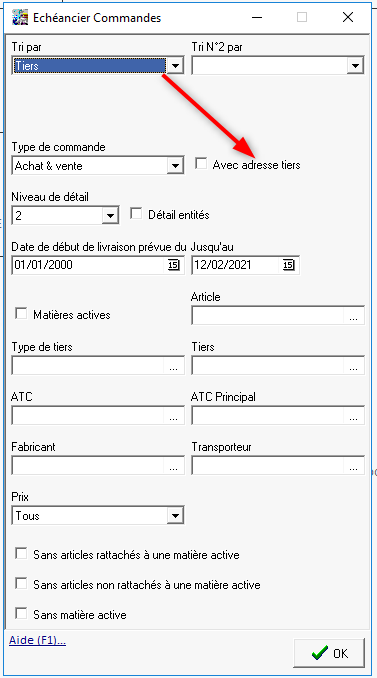 Ajout d'un filtre Transporteur. Ajout d'une Adresse Tiers