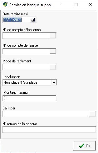 Permet de sélectionner en fonction des dates de remise saisies dans la pièce de règlement.