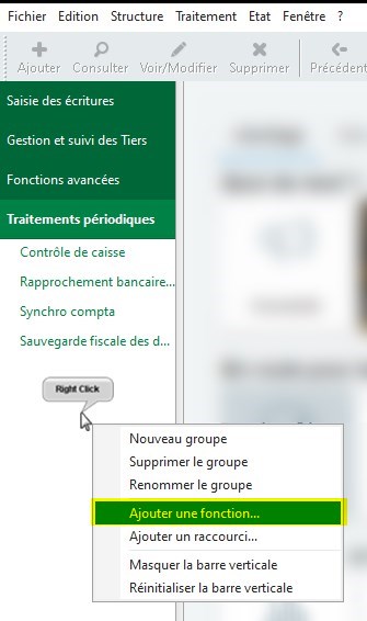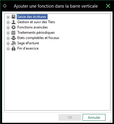 Ajout d'une fonction ou d'un raccourci vers une édition spécifique dans la barre verticale, dans SAGE.