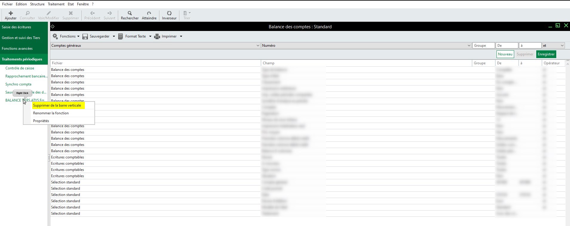 - Clic droit dans la barre verticale, sur la fonction et sélectionner Supprimer