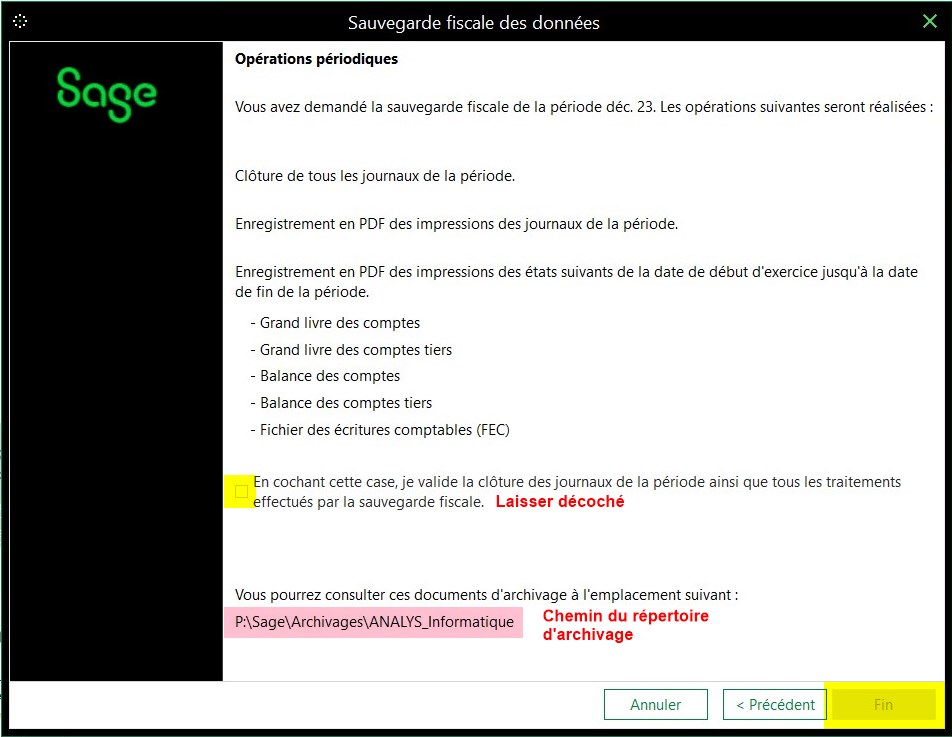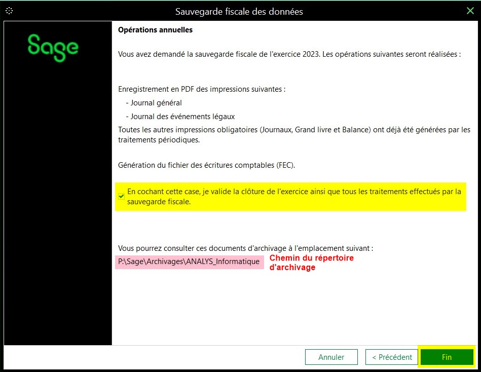 Bien repérer le chemin du répertoire d'archivageOpérations annuelles