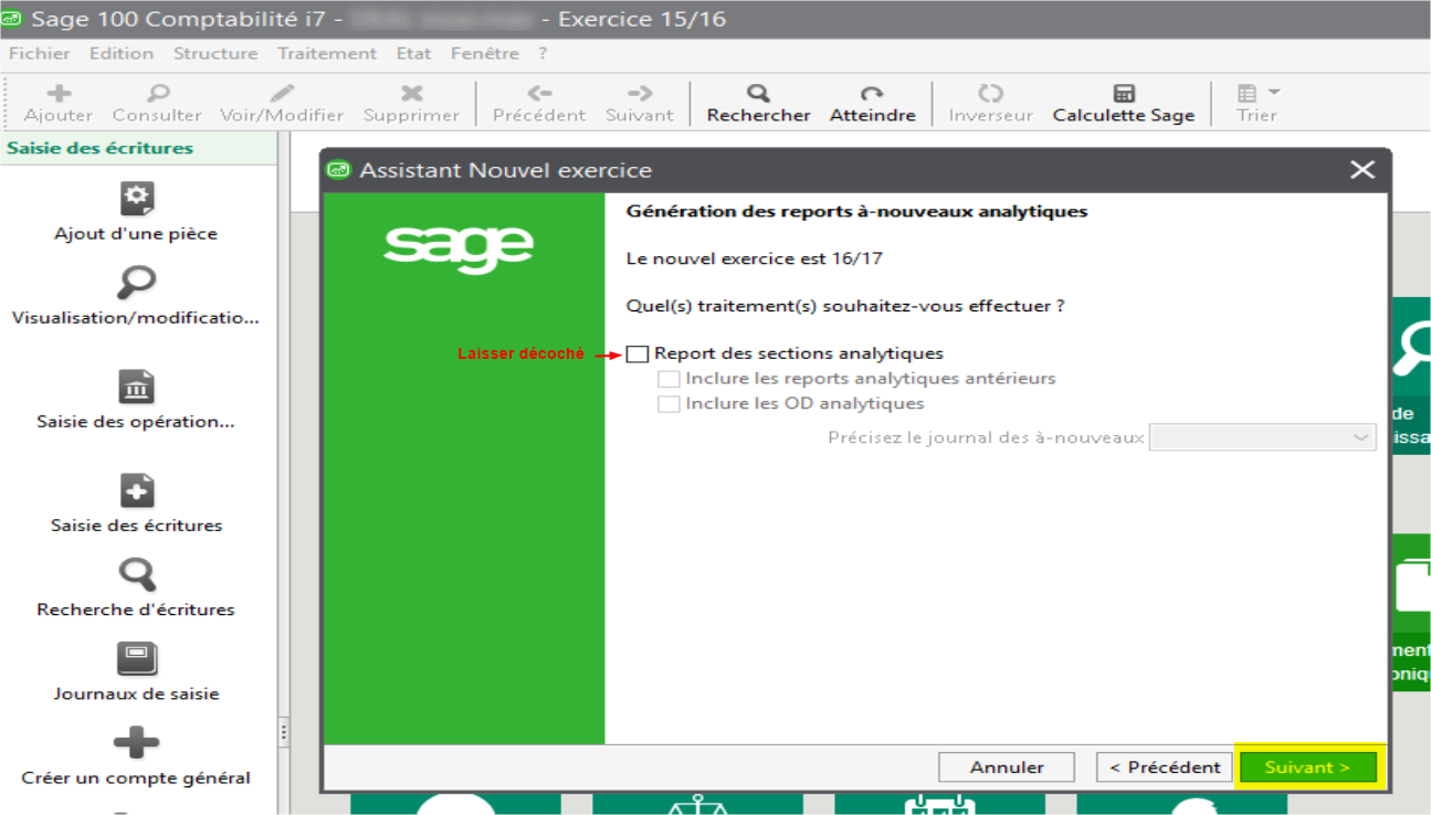 Génération des reports à-nouveaux analytiques : Ne rien cocher et cliquer sur Suivant