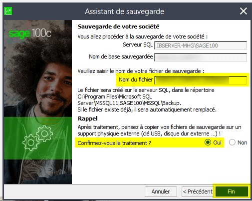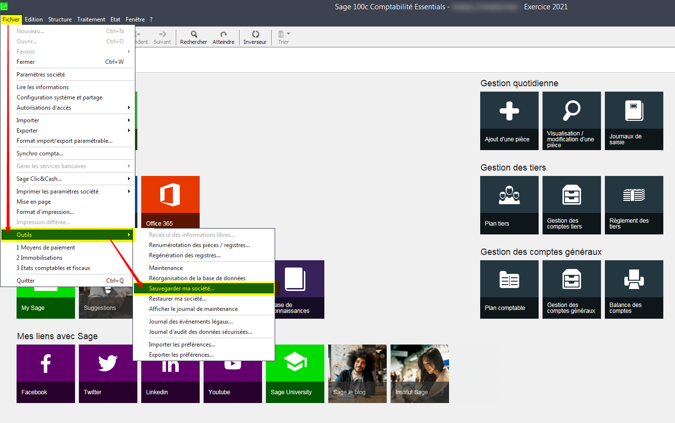 Sage 100C - Sauvegarde du fichier comptable