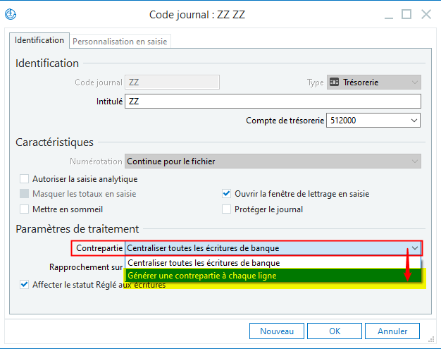Il faut ensuite revenir dans le paramétrage du journal pour supprimer la centralisation renseignée par erreur. Cela n'est possible que si le journal ne contient aucune écriture.