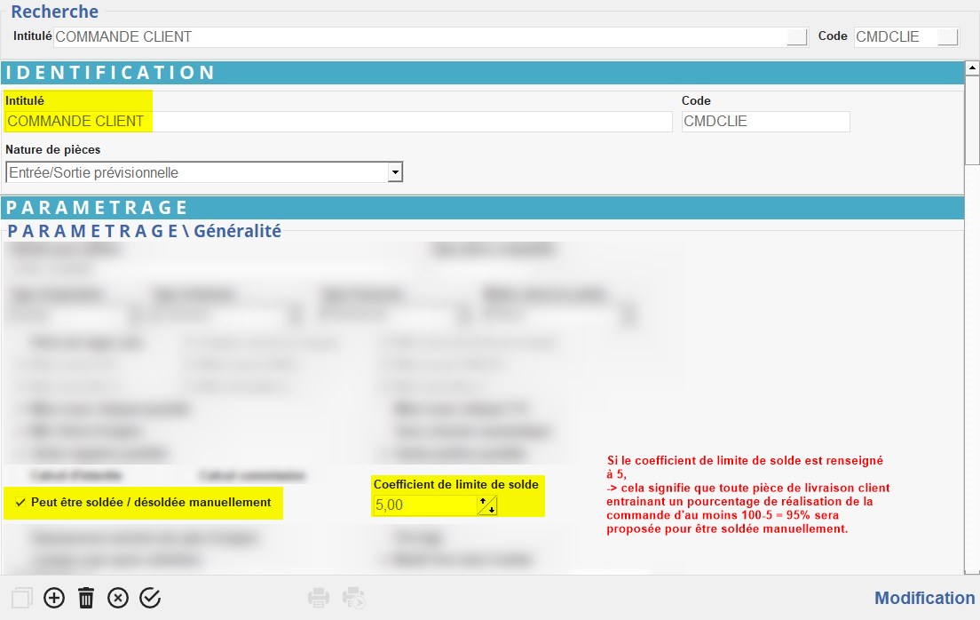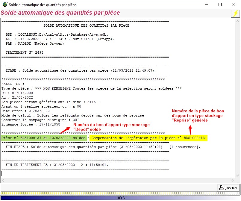 Ce traitement permet de solder des lignes de pièces dont le pourcentage de réalisation est supérieur à une valeur déterminée au moment du traitement.