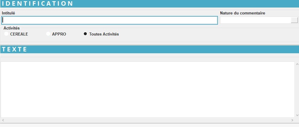 Renseigner l'intitulé du commentaire (50 caractères alphanumériques maximum) - Nature du commentaire