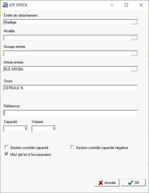 - Cocher, si besoin la gestion contrôle capacité / gestion contrôle capacité négative et MAJ qté à l'incorporation (voir descriptif ci-dessous).