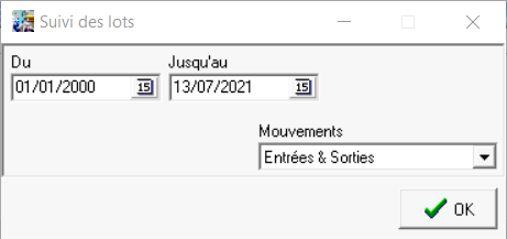 - Lors du transfert sortie, comme pour tout autre sortie de marchandise, un lot est proposé et peut être modifié.