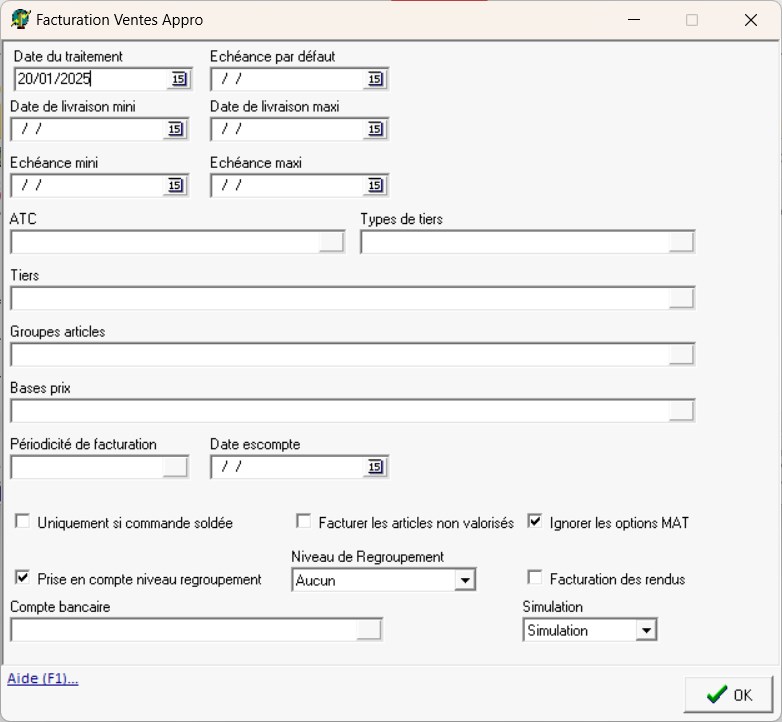 Traitement → Facturation → Facturation des Ventes Appro