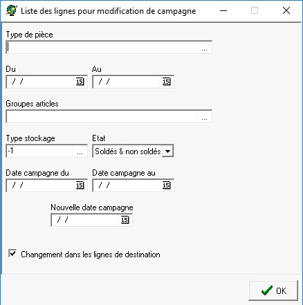 La validation entrainera le changement de la date campagne dans les lignes choisies dans la liste.