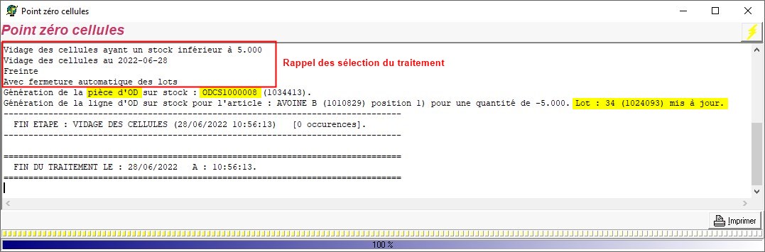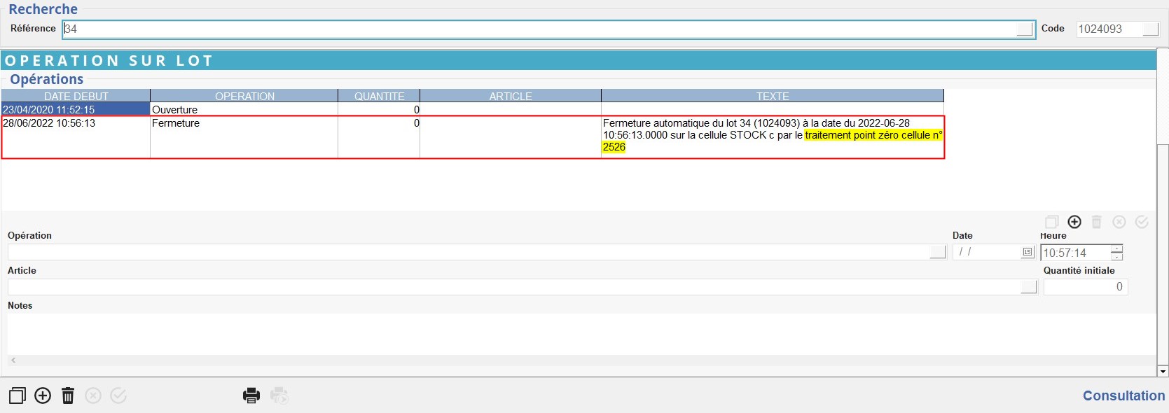 Remise à zéro des stocks physique des cellules par la création d'une pièce d'OD Stock Céré, avec possibilité de fermer les lots à la suite.