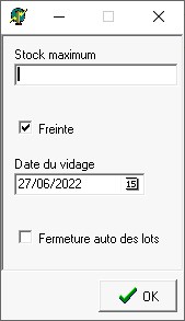 Renseigner le stock maximum des cellules à remettre à zéro. - Freinte