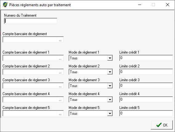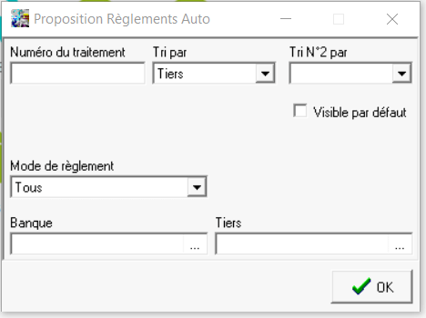 Traitements → Règlement automatique → Règlement automatique