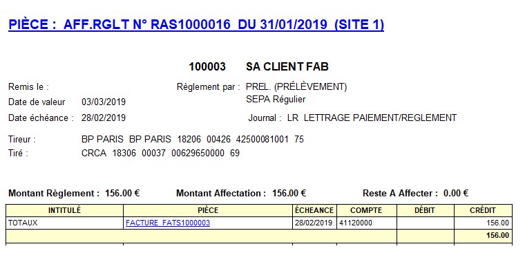 - Si renseignée: Correspond à la date de la pièce de règlement.