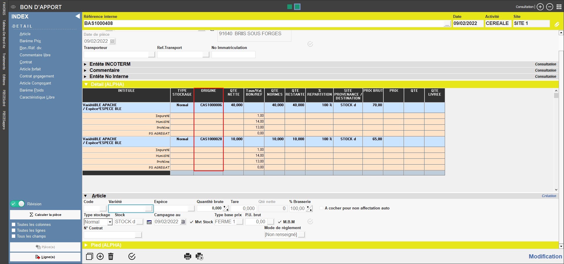 - La ligne de 50 T du bon d'apport initial a été divisée en deux lignes pour satisfaire les quantités contractualisées.