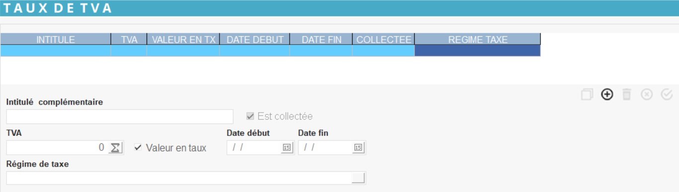 Renseigner le taux de TVA à appliquer. - Valeur en taux