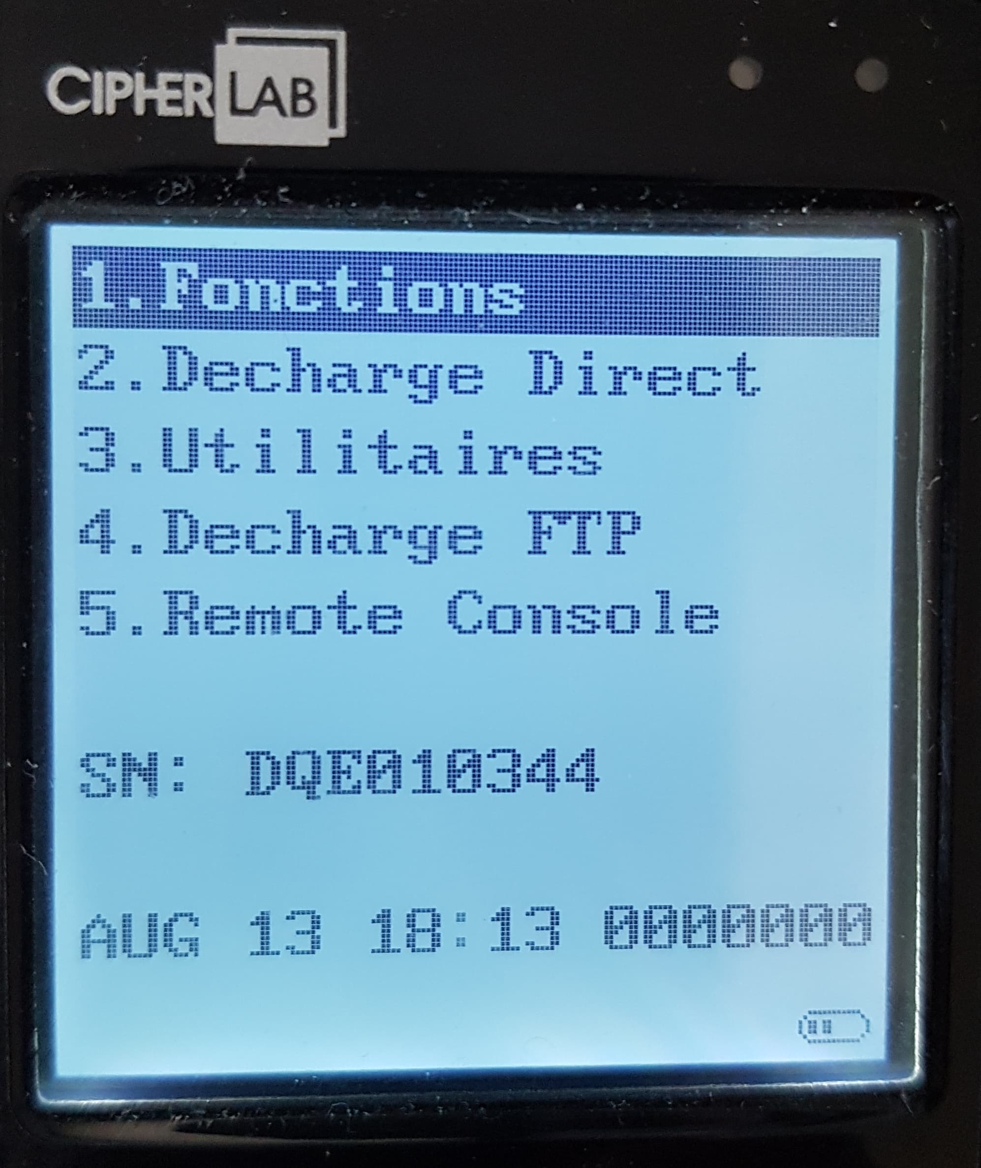 - Sur le Cipher, partir de l'écran d'accueil, sélectionner “2. Décharge Direct”