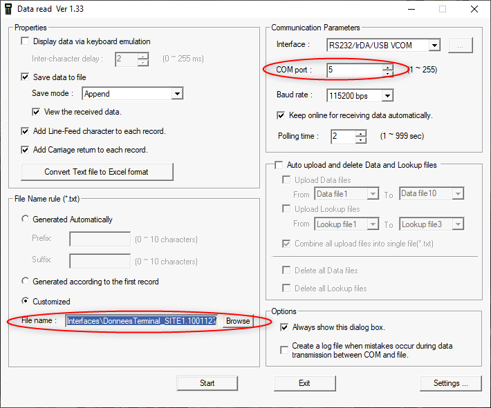 - Lancer le “DataRead” puis “Start”