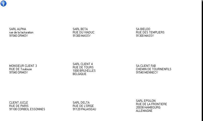 Édition d'étiquettes contenant l'adresse des tiers certifiés, pour l'envoi de courrier.