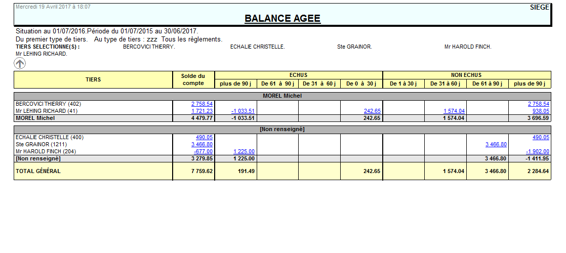 L'édition liste l’ensemble des règlements clients attendus par l’entreprise, ainsi que les factures qui restent à payer mettant en évidence les retards de paiement.