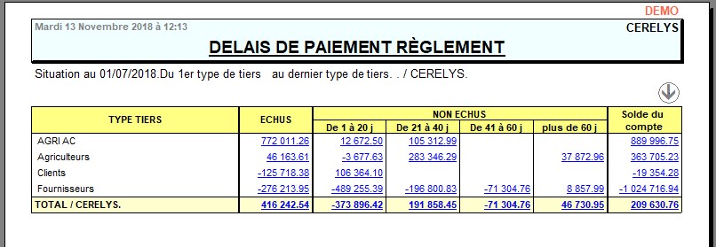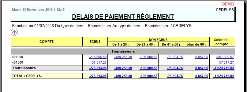 Pour un type de tiers (Fournisseur par exemple). Avec des délais à 20, 30 et 40 jours et avec détail des comptes.