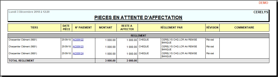 | Nom du tiers | Lien vers les pièces en attente d'affectation |